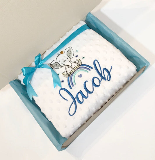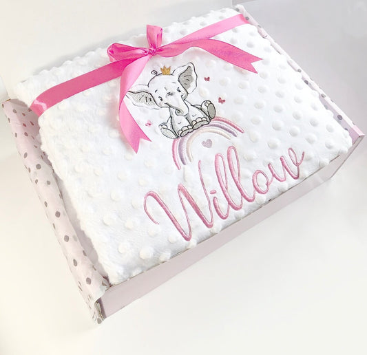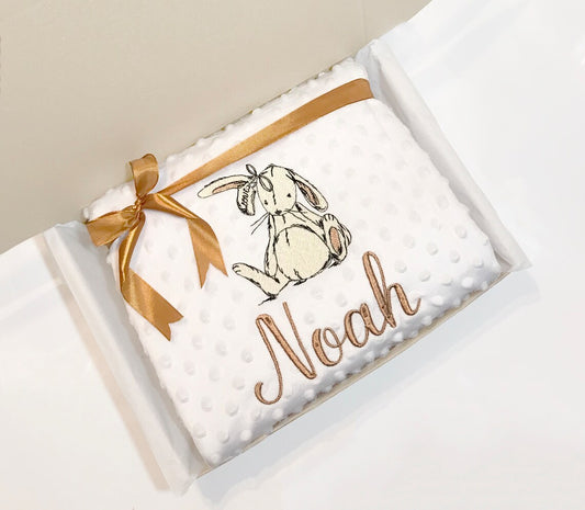 Personalised Baby Blanket – Embroidered Minky Dot Blanket with Bear & Butterflies – Custom Name Gift