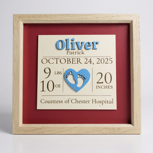 Personalised Baby Birth Announcement Keepsake – Framed Newborn Stats Sign