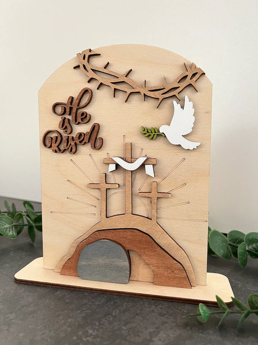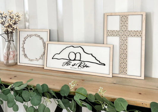 Religious Easter Home Décor, He is Risen Jesus Christ Sign, The Easter Story,