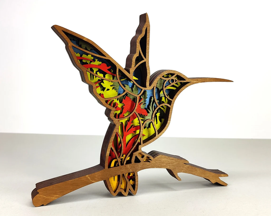 Laser Cut Humming Bird on a Branch