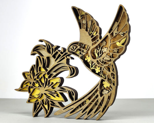 Laser Cut Hummingbird and Flower