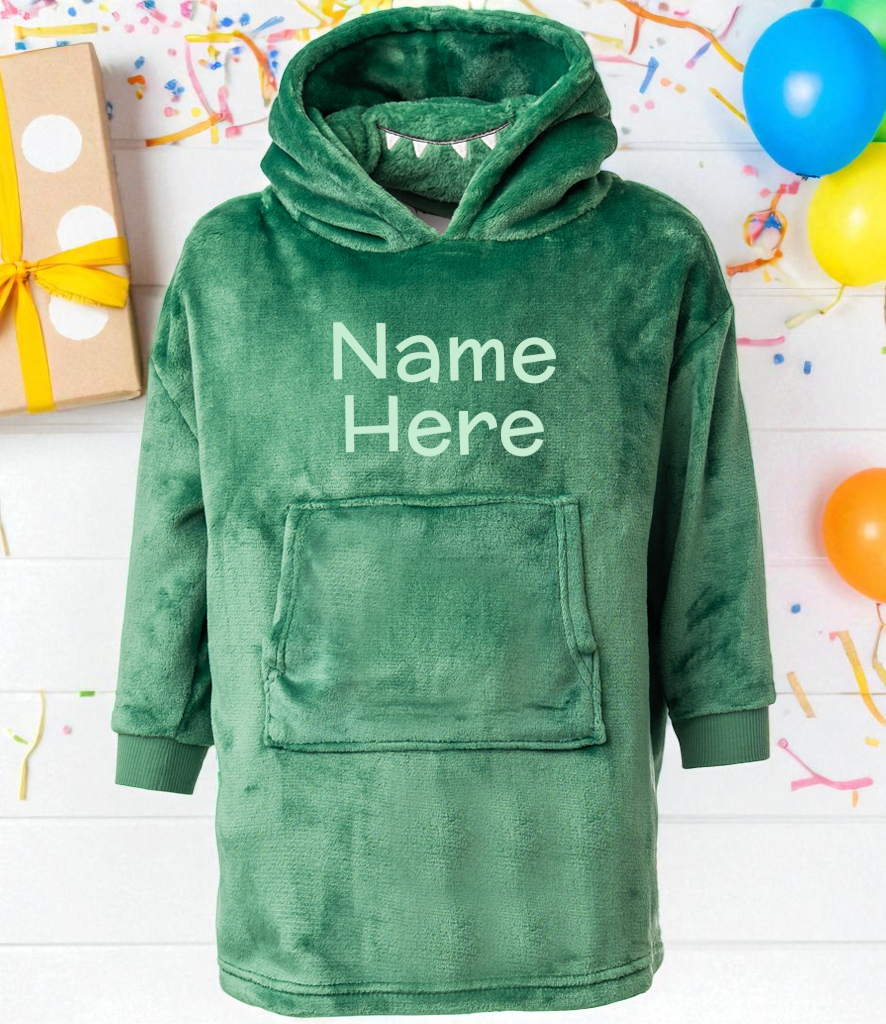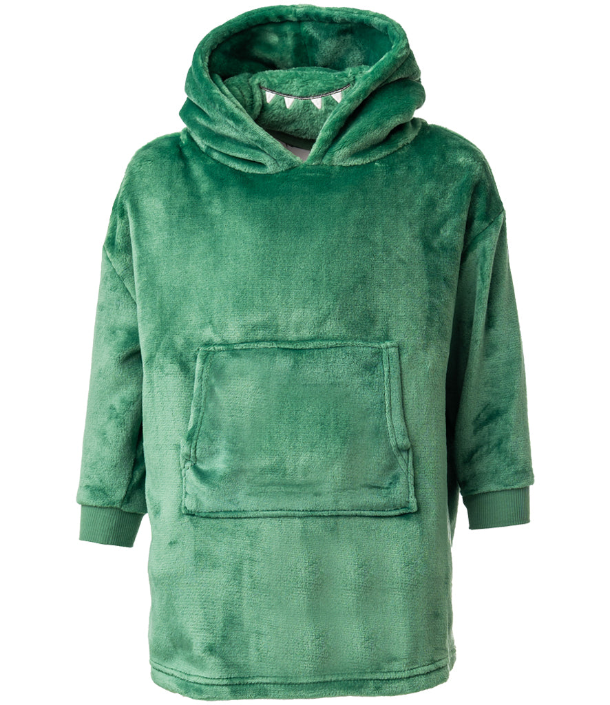 Snuggle up in dino-sized comfort! This ultra-soft green hoodie blanket is made from plush fleece, perfect for keeping warm on chilly days. The oversized fit makes it great for lounging, movie nights, or bedtime cuddles. The fun dinosaur design features a hood with soft teeth detail, turning cosy time into a playful adventure.